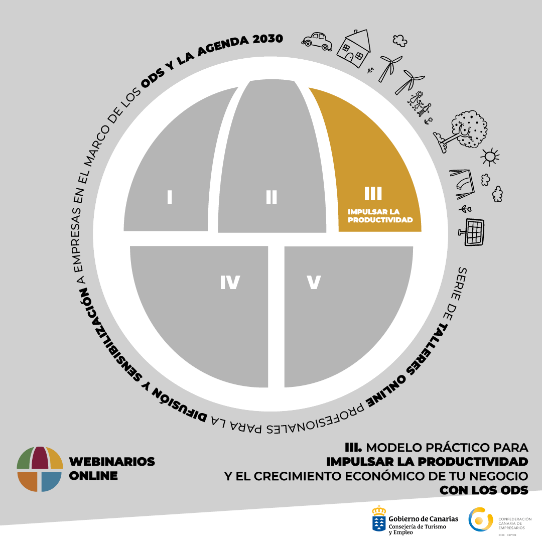 Se realizarán y diseñarán al menos cinco acciones con una duración mínima de dos horas, destinadas a impulsar en las empresas el cumplimiento de los ODS. Los talleres se realizarán en formato online y tienen como finalidad difundir e intercambiar conocimientos entre los ponentes y asistente que permitan incorporar cambios en las estrategias en la implantación de la Agenda 2030 y la Agenda Canaria de Desarrollo Sostenible 2030 en el sector privado empresarial de Canarias. Serán talleres prácticos y divulgativos que darán soluciones a las dudas, muchas veces comunes, de las empresas, especialmente a las que se encuentran inmersas en el proceso de implantación de sus objetivos como organización, así como de sus estrategias futuras. Contará con la colaboración de empresas y expertos que, si se estima conveniente se podrán crear mesa redonda de debate que permita llegar a conclusiones y consolide la implementación de los ODS en la estrategia empresarial, así como los nuevos modelos de gestión corporativa y de trabajo que surge a raíz del desarrollo de la Agenda 2030 y la Agenda Canaria de Desarrollo Sostenible 2030.