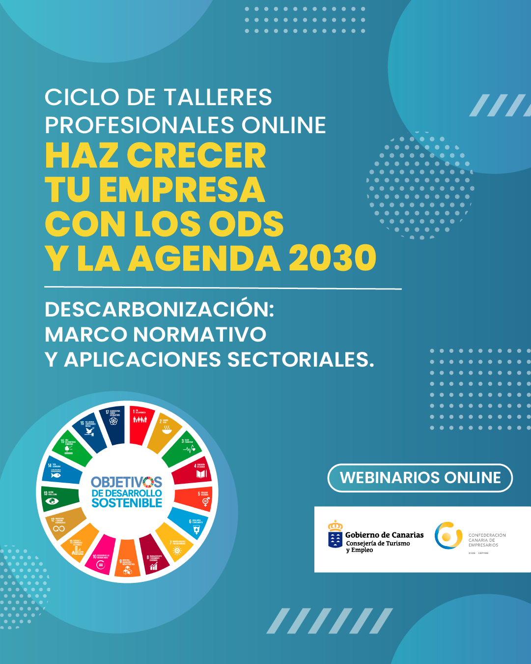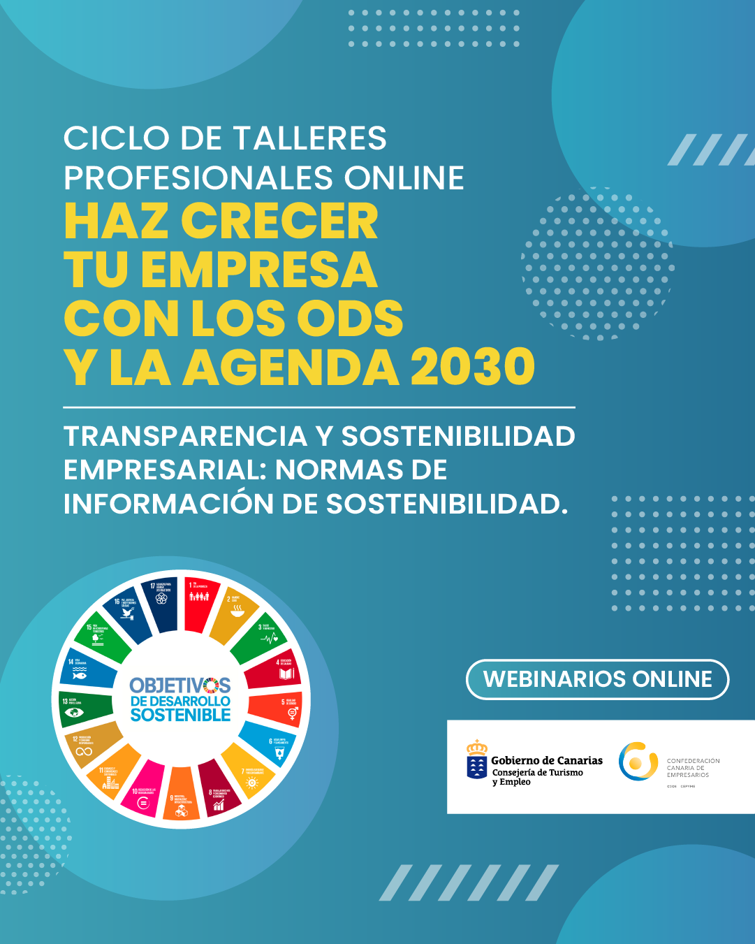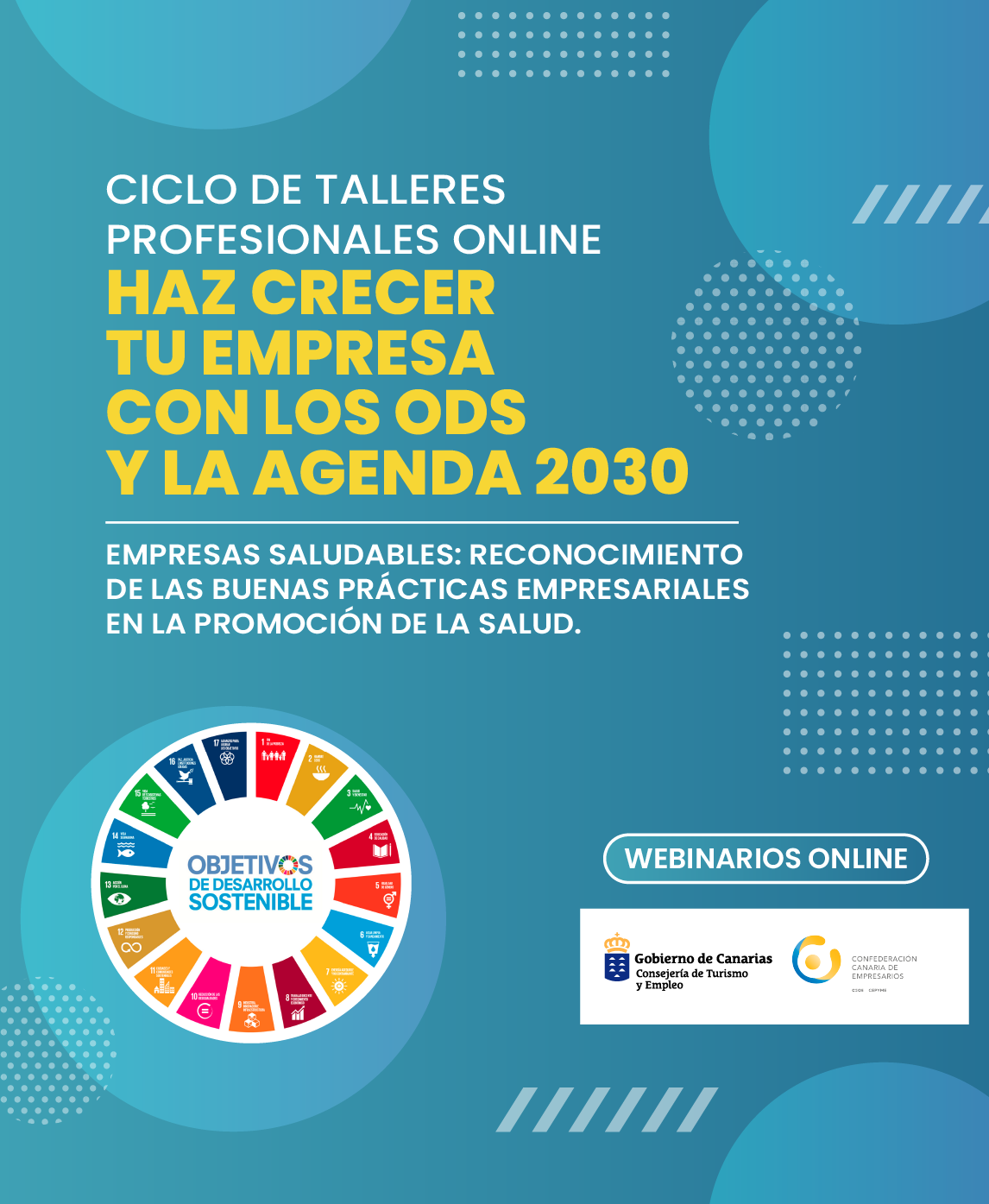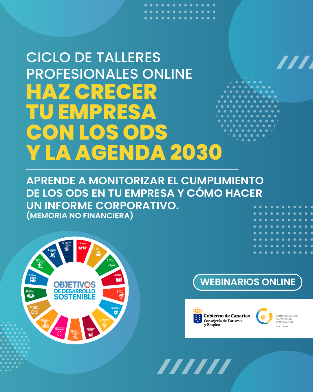 Es por ello que, a través de nuestra "Oficina Técnica para el Asesoramiento y Desarrollo de los ODS, y para conseguir Empresas Saludables y Resilientes", y con el apoyo financiero de la Consejería de Turismo y Empleo del Gobierno de Canarias, les invitamos a participar en un itinerario de capacitación empresarial 100% online. Este itinerario comprende seis talleres gratuitos, cada uno diseñado para proporcionar conocimientos y herramientas para ayudarle en la consecución de los ODS. Al finalizar cada taller, se otorgará un certificado de asistencia.